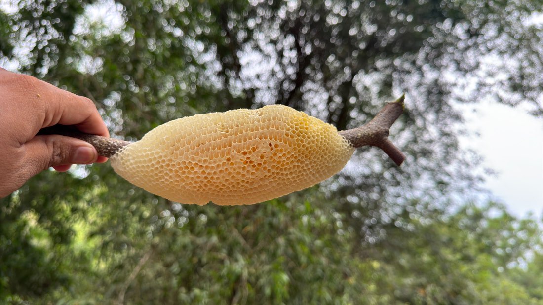 Người trực tiếp lấy mật là anh Tuấn Ta – một thợ săn ong kỳ cựu, gắn bó nhiều năm với nghề truyền thống. Với kinh nghiệm dày dặn và sự tôn trọng dành cho thiên nhiên, anh chỉ thu hoạch mật vào thời điểm thích hợp, đảm bảo chất lượng và tính bền vững cho hệ sinh thái rừng.